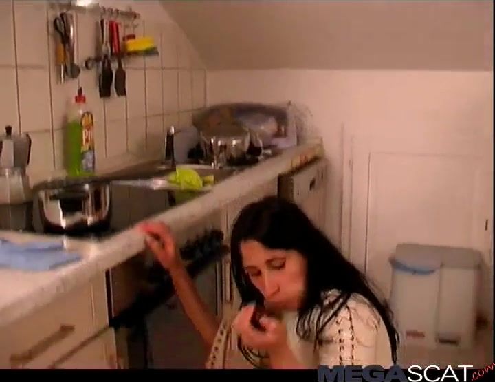 Dark haired babe pooping a big turd in white pants. She smears fresh poop on her entire ass.