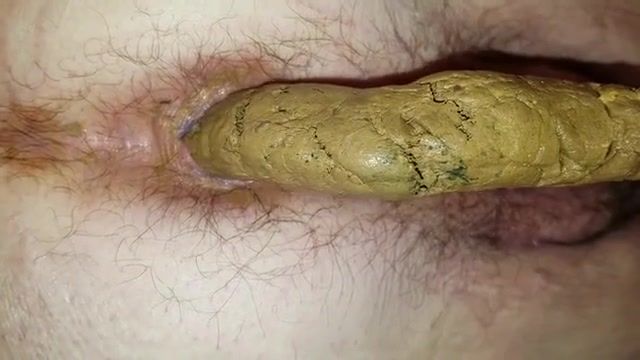 She records her hairy ass and pussy in close up while pushing a long yellow turd.
