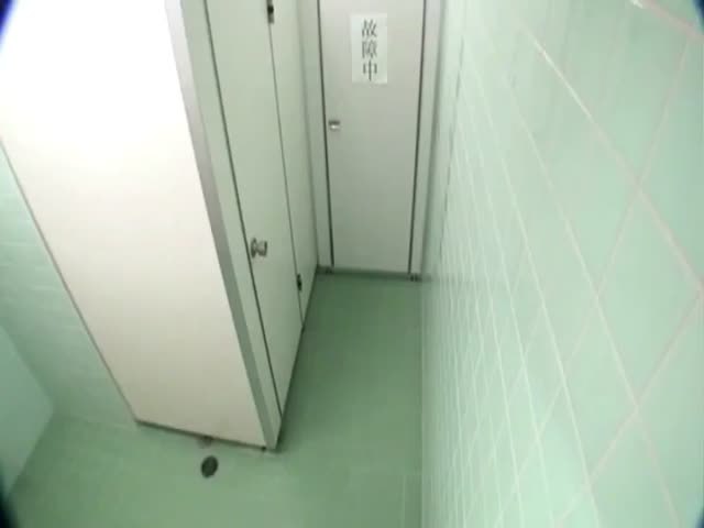 Dark haired teen is very desperate. She can't stop shitting in a public bathroom.