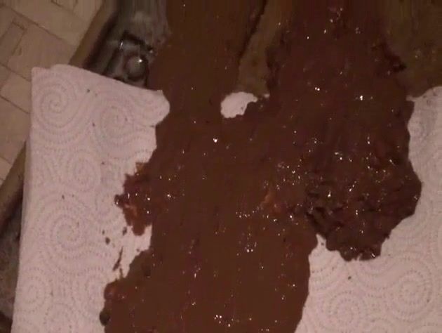 Mature brunette woman couldn't stop the urge to poop so she dropped a huge amount of diarheea on the kitchen floor, by mistake.