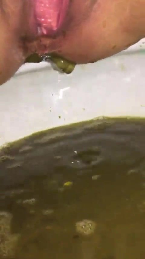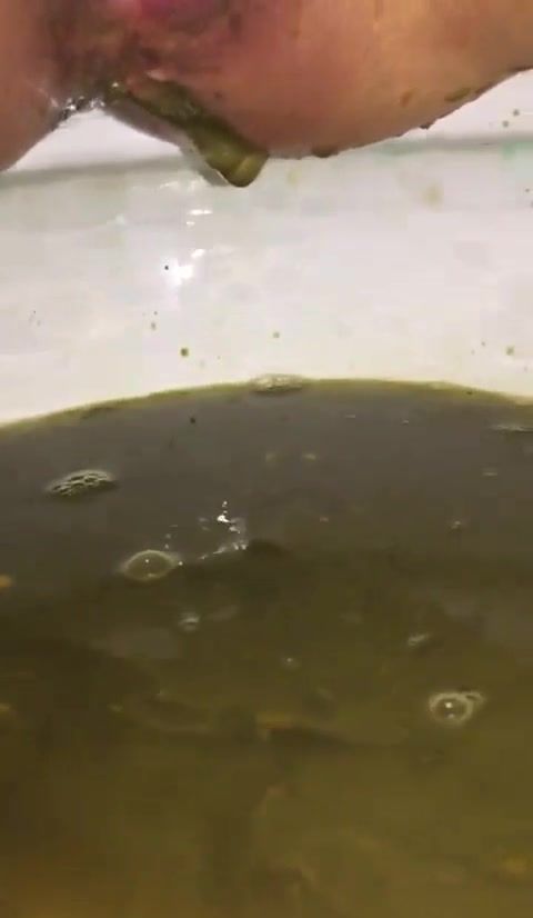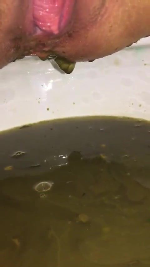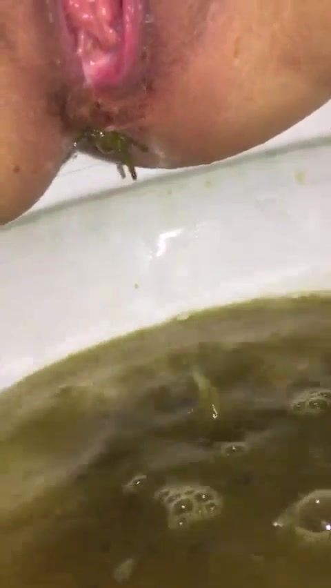 Sexy babe records her shaved ass in close up while she's pooping liquid shit with pressure.