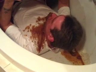 Diarheea on his entire face in bathtub