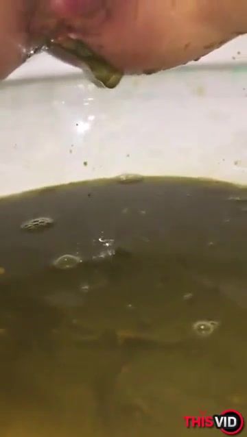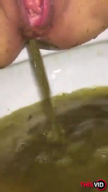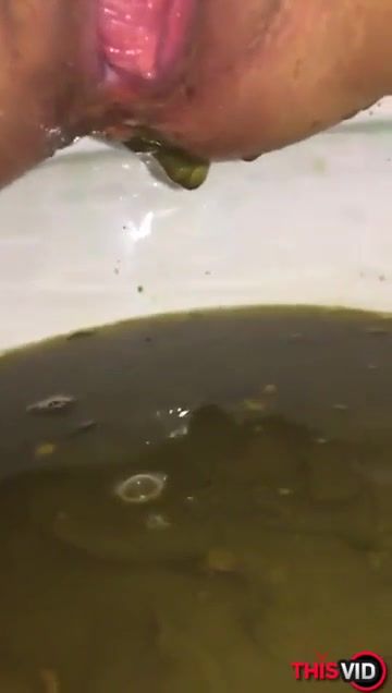 She records her shaved pussy and ass in close up while pooping liquid shit with pressure.