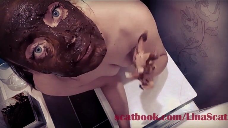 Dirty chubby girl smearing shit on her lovely face