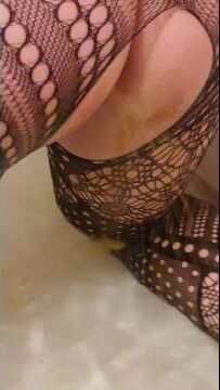 Dirty horny bitch enema poop show