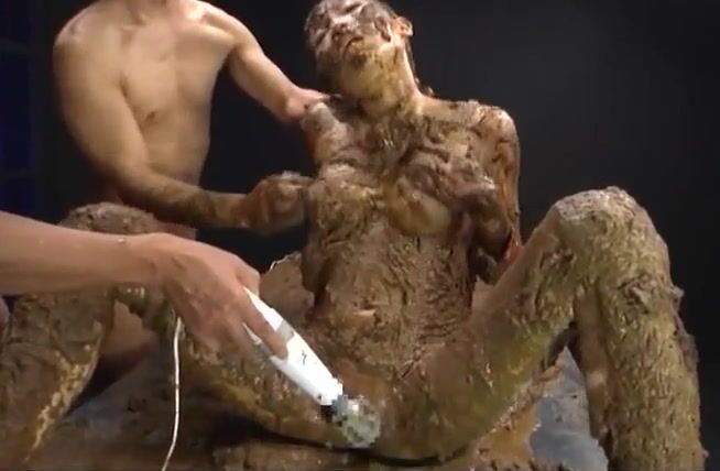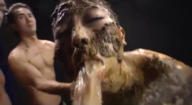 Dirty Japanese girl covered heavily in the shit