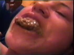 Dirty naked wife taking heavy shit in mouth