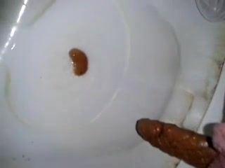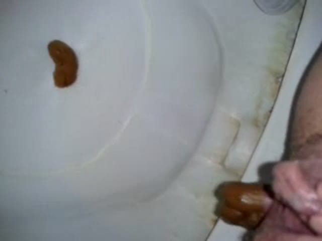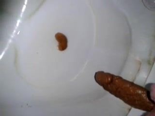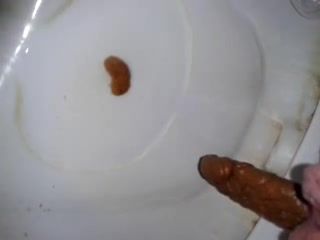 Teen girl records her shaved ass and pussy as she dropped a long red turd in the toilet.