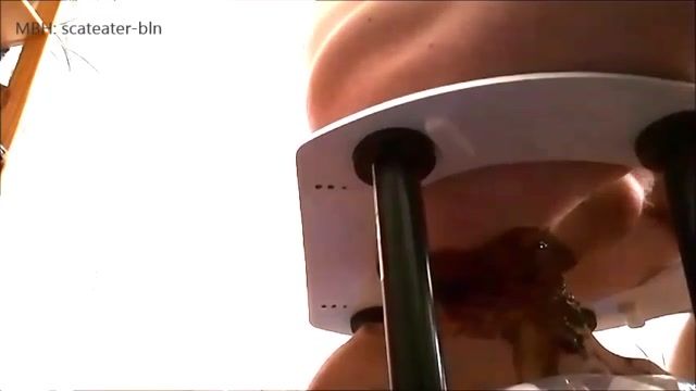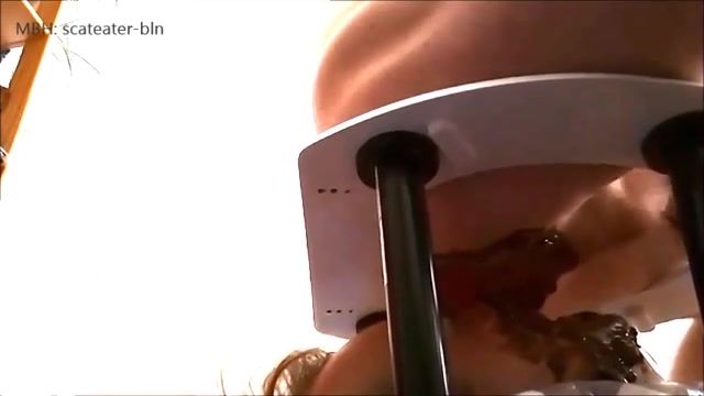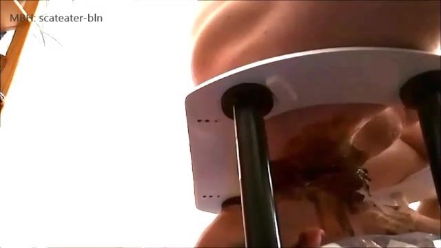 Mature man pooping creamy shit on her female slave. She's eating poop from his asshole while he's jerking off.