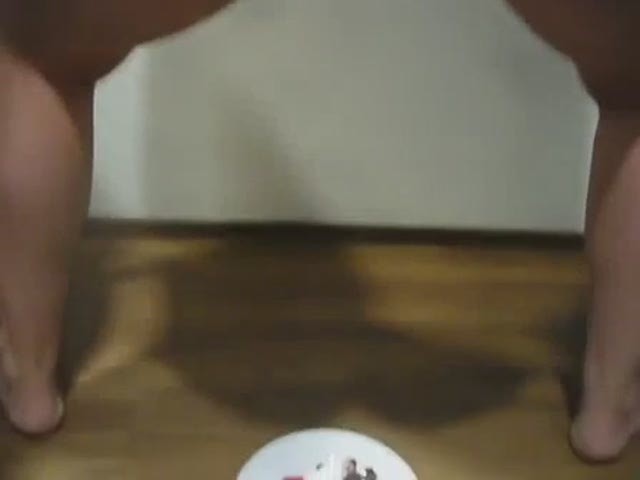 Blonde mature woman is forced by her mean boyfriend to eat fresh poop from a white plate. For a moment I thougth that she's going to puke on the floor…
