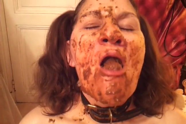 Brunette mature woman rubbing poop on her naked body. She's eating poop like a good slave that she is.