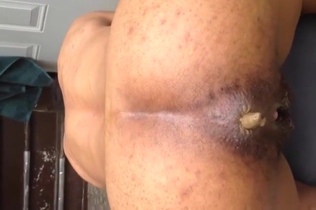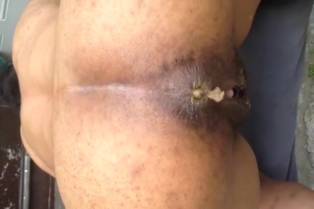 Ebony babe sits naked on her knees as she's pooping outdoor. Great view of her big ass.