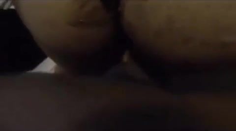 Ebony girl sits naked on her knees and her black boyfriend is fucking her hard in doggystyle position.
