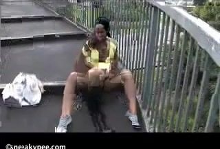 Ebony girl peeing outdoor