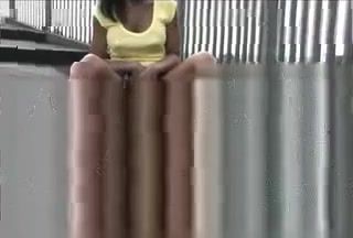 Ebony girl decides to pee in a public place because she couldn't find a public bathroom in time.
