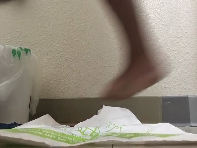 Ebony girl sits naked on her knees and she starts pooping a lot on bedroom floor.