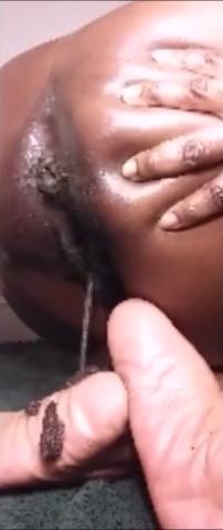 Ebony girl shitting on her feet slowly
