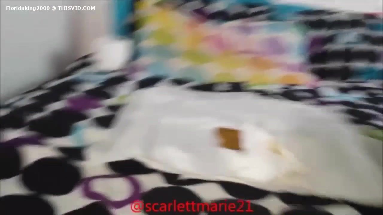Ebony girl sits naked on her knees and she's pooping a lot on bed.