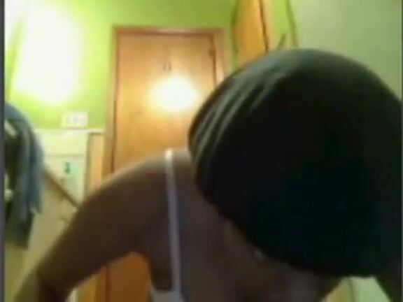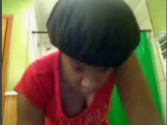 Ebony horny teen plays in the bathroom