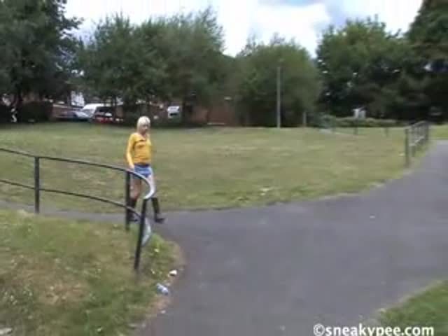 Emo girl is peeing on the ground under a bridge because she couldn't find a public bathroom in time.