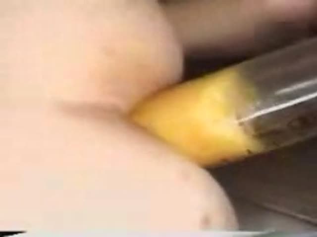 Japanese babe doing enema with an orange liquid. She wants to poop liquid shit with pressure after that.