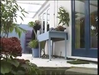 Blonde Czech girl peeing on door steps in front of neighbours porch.