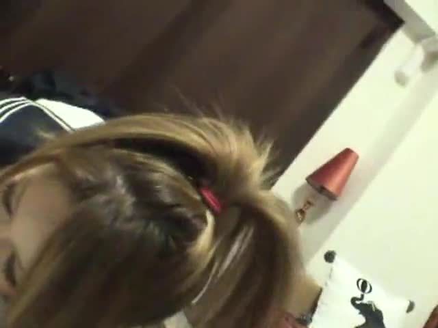 Brown haired Japanese girl is trying to stop the urge to poop but she failed as she shit on the floor…near her slave.