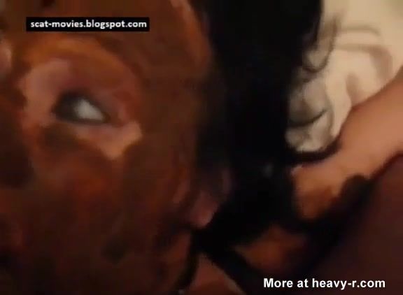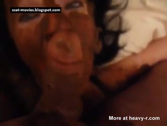 Brunette wife smears a lot of shit on her face. Her husband starts deepthroating her hard.