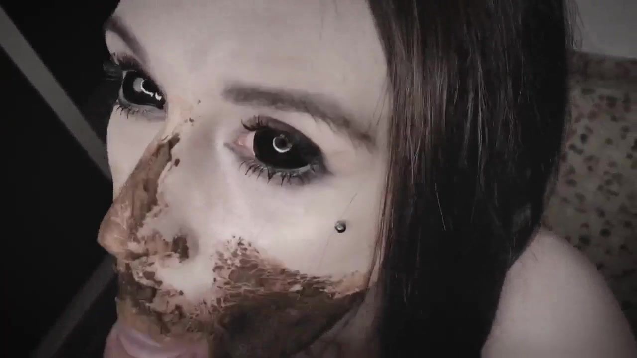Tattooed teen surprised her boyfriend with an unique blowjob. She smears poop on her face before that.