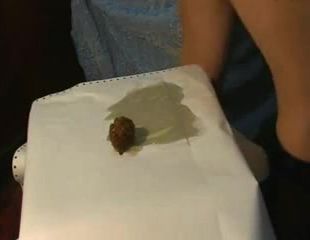 Vintage video of a brunette babe that's farting a tiny turd from her shaved butthole.