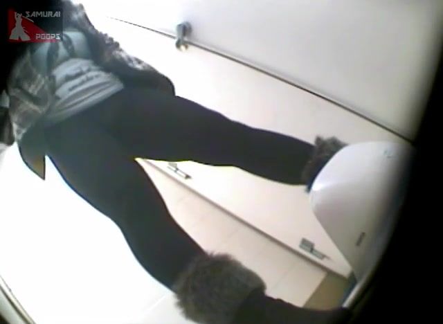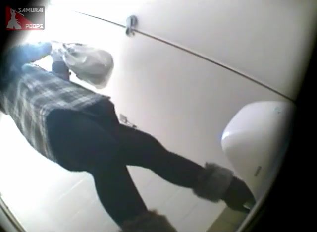 Mature women can't hold anymore that urge to poop so she went in a public bathroom and took a fast shit in the toilet. Awesome.