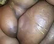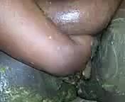 fat black girl smearing yellow poop on her shaved pussy. She's masturbating until she reached climax.