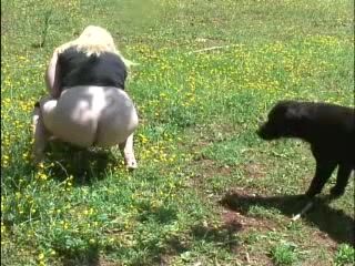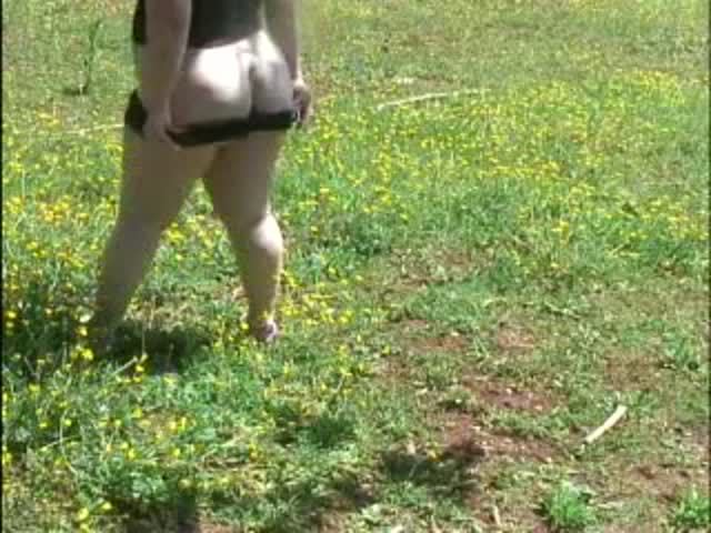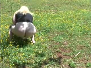 Fat blonde shitting into a public park