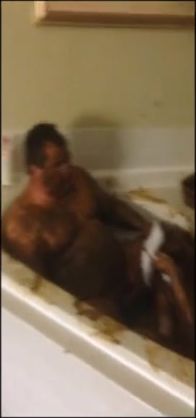 Fat couple masturbating while they smear saved shit on their naked bodies.
