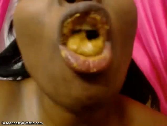 Fat ebony that's working on a webcams website was paid to smear yellow shit on her entire face.