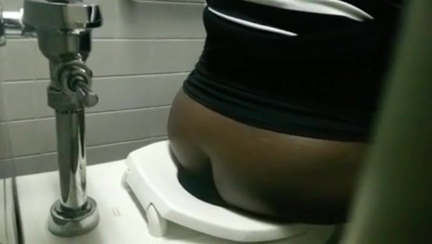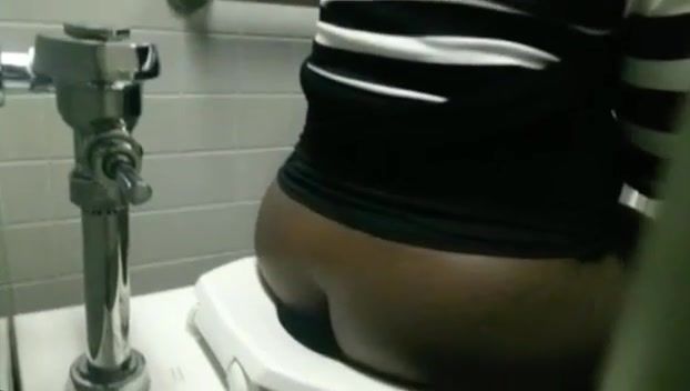 Fat ebony peeing in a public bathroom