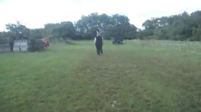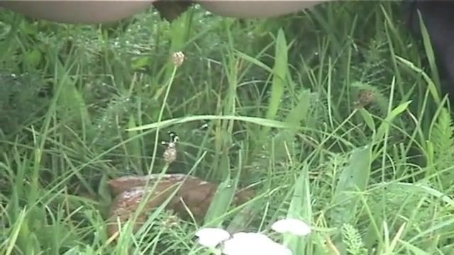 Blonde chubby girl is trying to find the perfect spot to poop and piss on the ground in a middle of a field. Awesome.