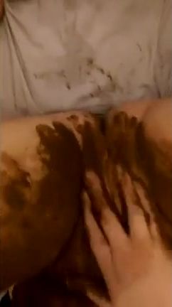 Fat wife smearing poop on her shaved pussy. She starts masturbating with scat until she reached climax.
