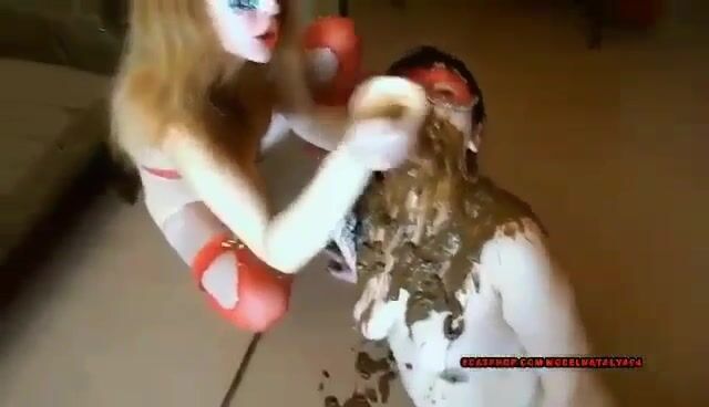 Feeding her lover with shit