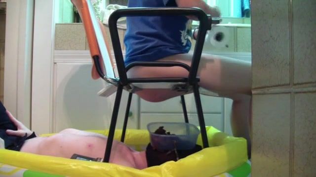 Sexy mistress is feeding her male slave. She takes a big chunk of shit into her opened mouth…fucking awesome.