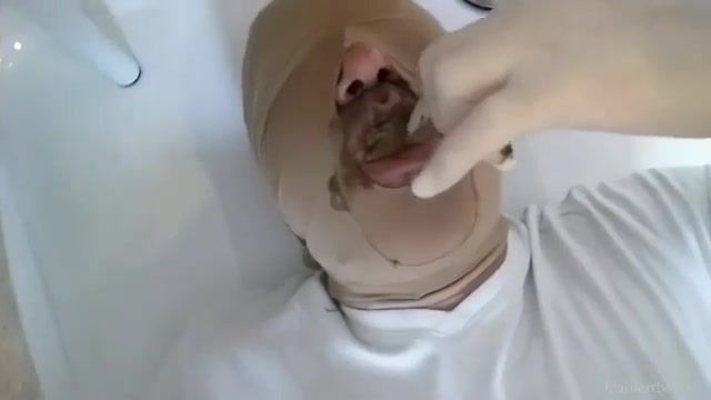 Dark haired babe feeds her male slave with lots of poop. She forced him to swallow all of it.