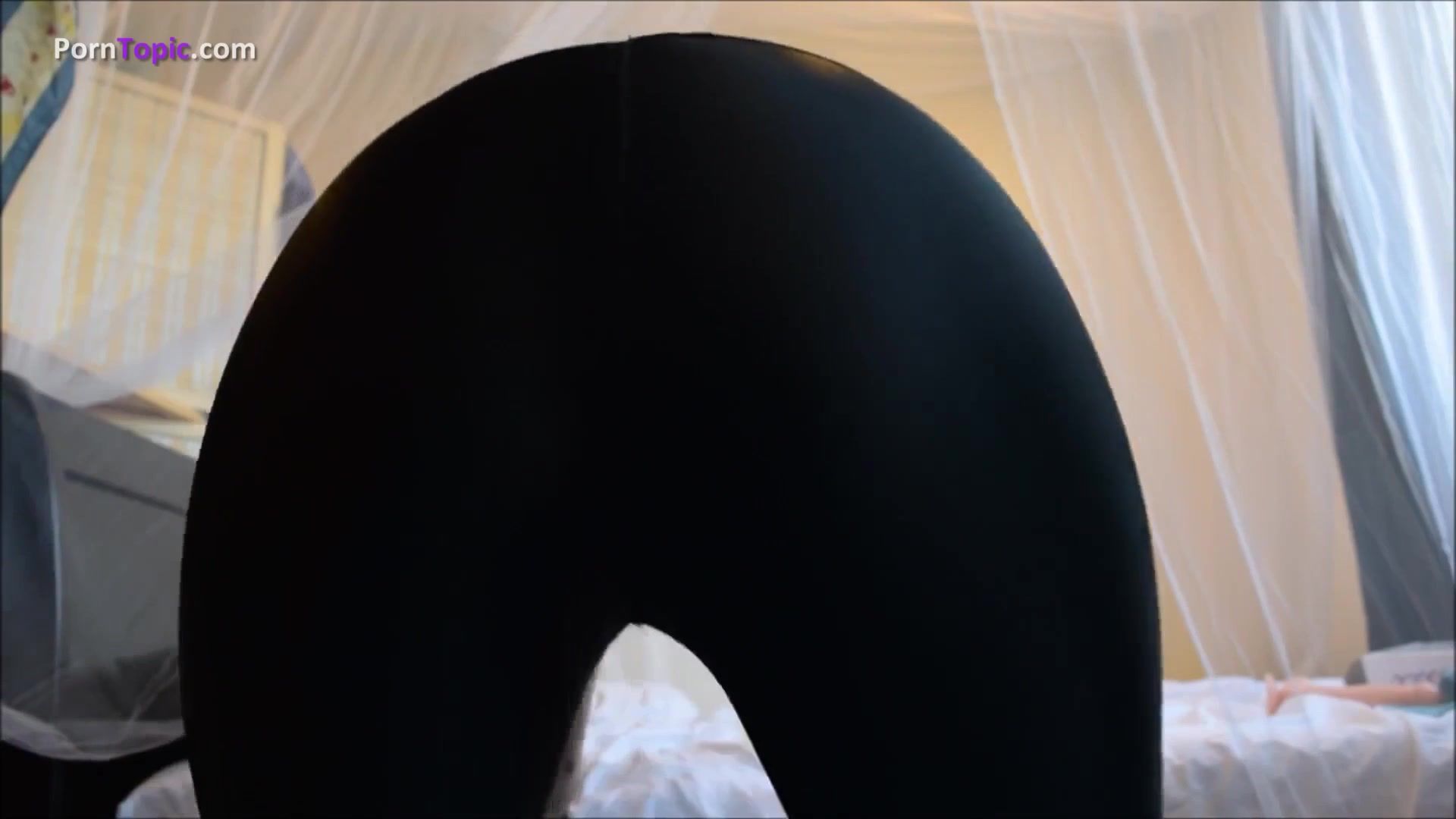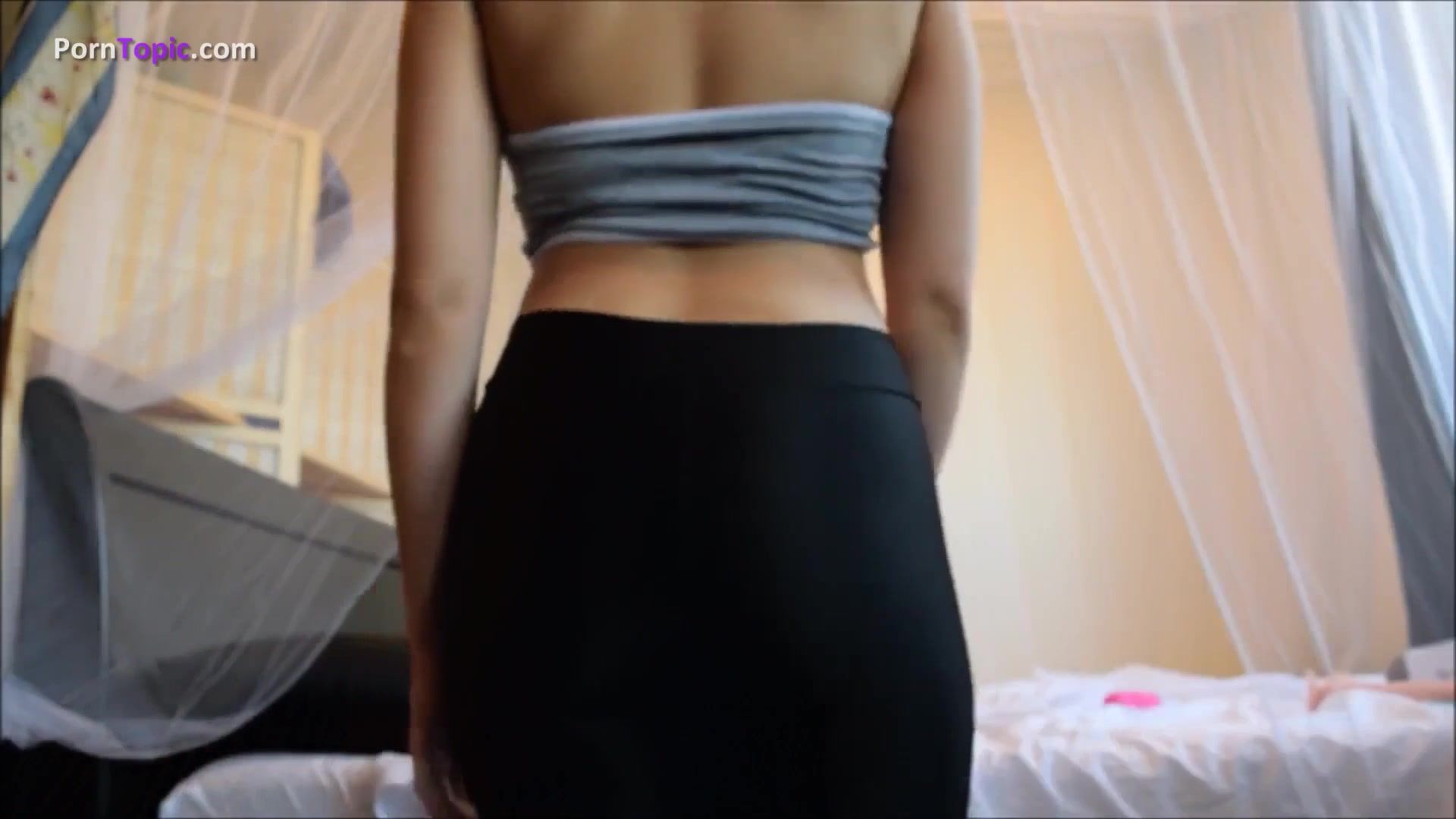 Sexy teen filled black leggings with fresh shit. She smears that poop and she starts masturbating,
