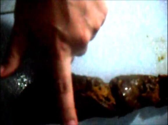 Fingering her messy load after pooping