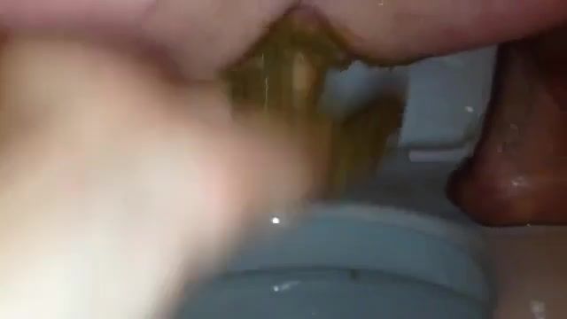 Sexy wife is fingering her sweet while she's pooping green shit on the floor.