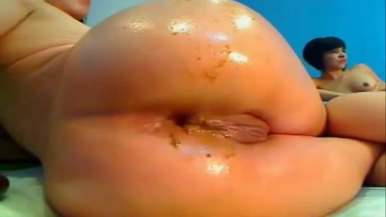 She inserts her entire fist into her tight butthole. She smears some fresh poop on her big ass.