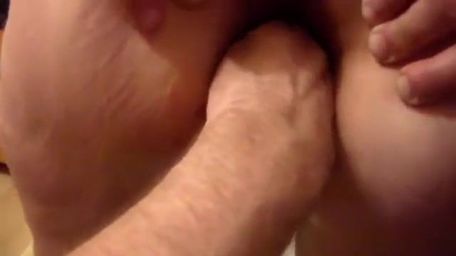 She sits with her ass pointing to the camera while boyfriend is fisting her tight butthole.
