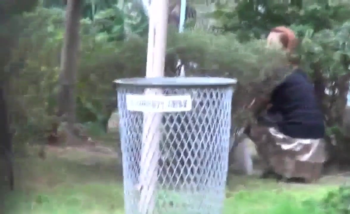 Japanese teen was forced to poop in a public place. She's trying to hide in a bush.