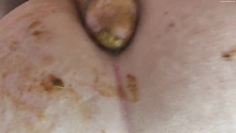 Hairy black girl smears yellow shit on her ass