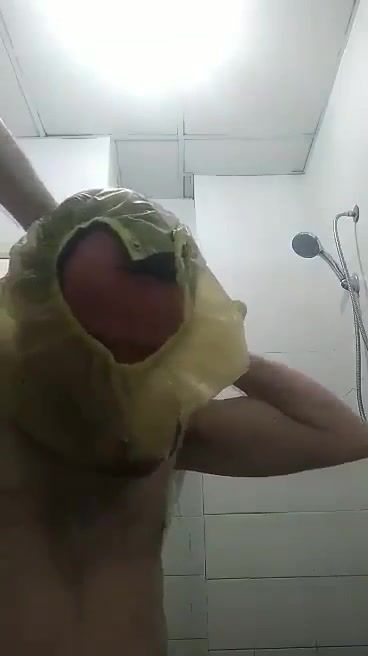 Full rubber pants over my face