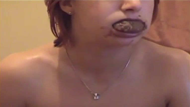 German hottie takes a big pile of shit in her mouth. She's eating poop without gagging.